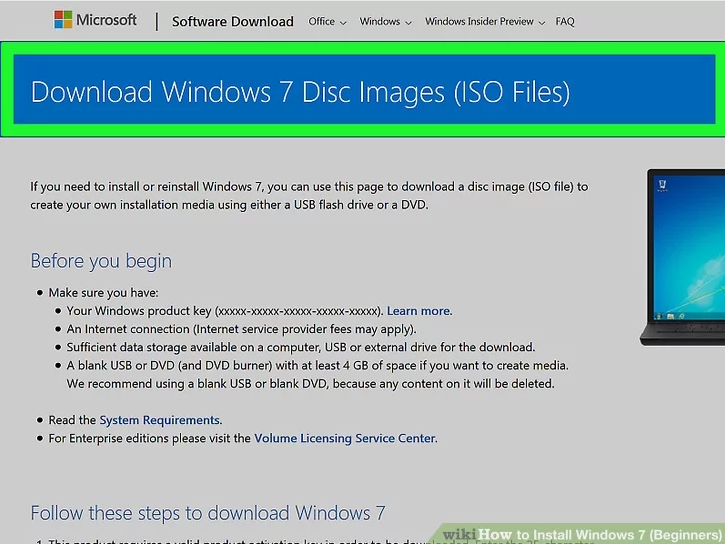 3、下載 Windows 7 安裝程序 ISO。ISO 文件是來自 CD、DVD 或藍光驅動器的原始數據。它也稱為磁盤映像。注意:此下載可能需要一段時間,具體取決于您的互聯網速度。