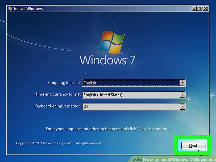 15、選擇您的 Windows 安裝程序選項。加載 Windows 安裝程序后,您將看到一個窗口。使用下拉菜單選擇您的首選語言、鍵盤類型和時間/貨幣格式,然后單擊右下角的下一步。
