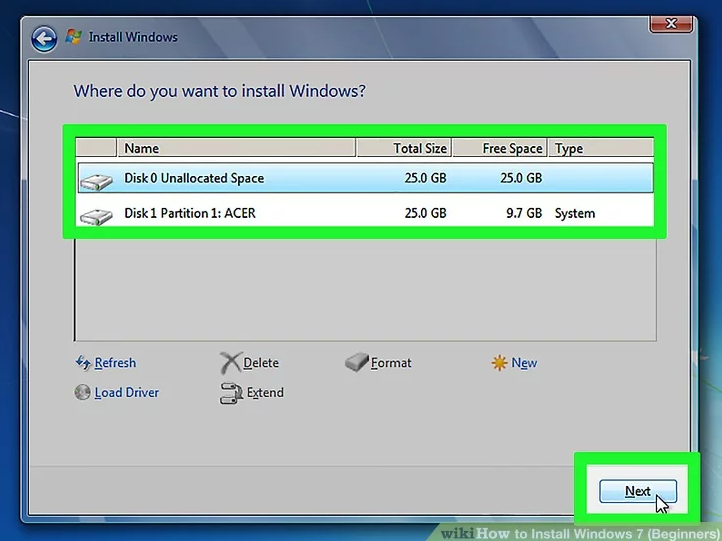 19、確定要在哪個硬盤驅動器和分區上安裝 Windows。硬盤驅動器是計算機的物理部分,用于存儲數據,并且分區將硬盤驅動器“劃分”為單獨的部分。