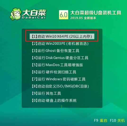 4.當顯示主菜單的時候,選擇win10X64PE(超過2G的存儲器),按回車鍵進入winpe桌面即可。