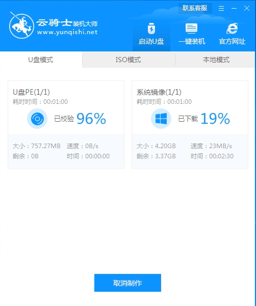 以上就是云騎士u盤裝系統win7的方法啦,希望能幫到大家。