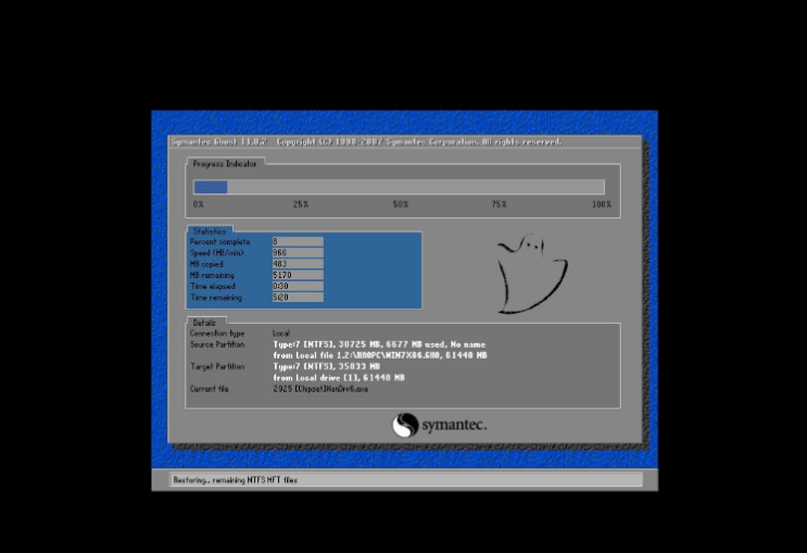 10、進入這個頁面,開始執行重裝win7系統過程,我們耐心等待。