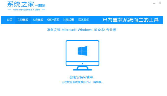 1、下載系統之家軟件后打開,選擇【在線重新安裝系統】。