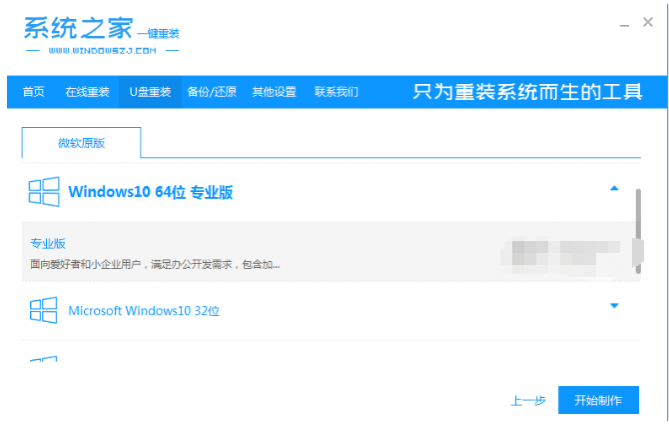 2、選擇自己需要安裝的win10系統,單擊開始制作。
