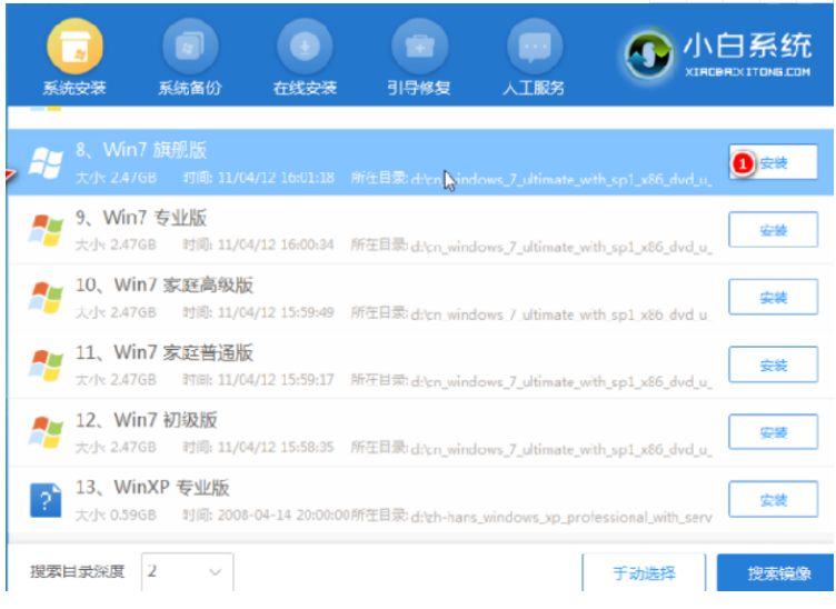 6、在pe內,打開小白裝機工具選擇需要安裝的系統執行安裝,目標分區選擇“C盤”即可。