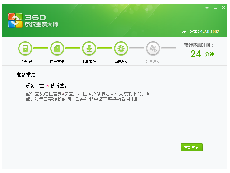 6、單擊立即重啟后,接下來我們只需要耐心等待系統安裝完成即可。