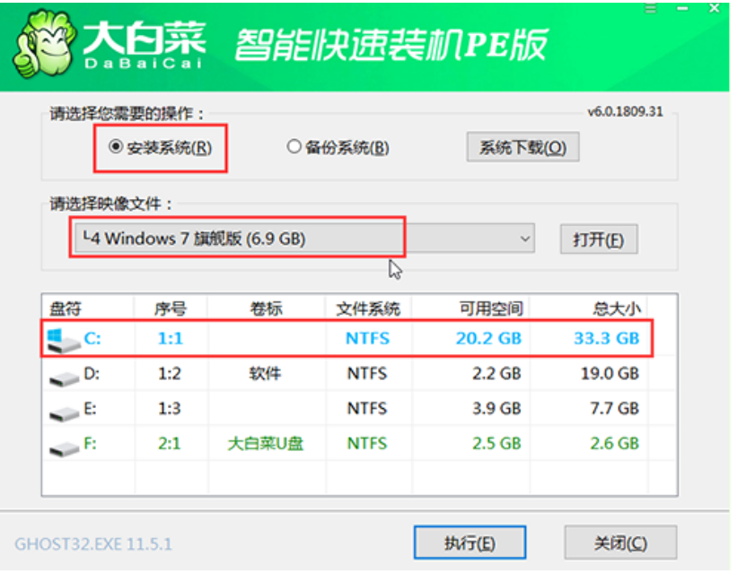 大白菜重裝系統win7