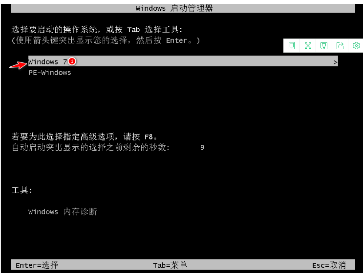 9.選擇Windows7系統然后按下回車進入。
