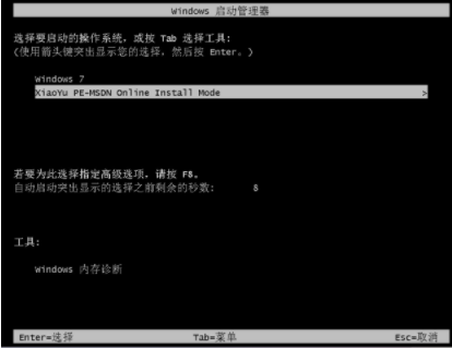 9、進入啟動管理器界面之后,選擇windows7,按回車。