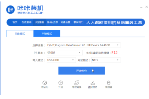 1、下載案子咔咔裝機軟件并打開,選擇U盤重裝系統。