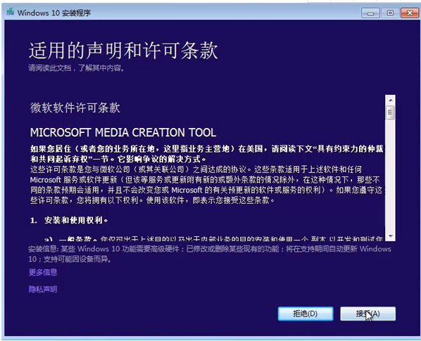 步驟四:我們閱讀過許可條款后,單擊接受。