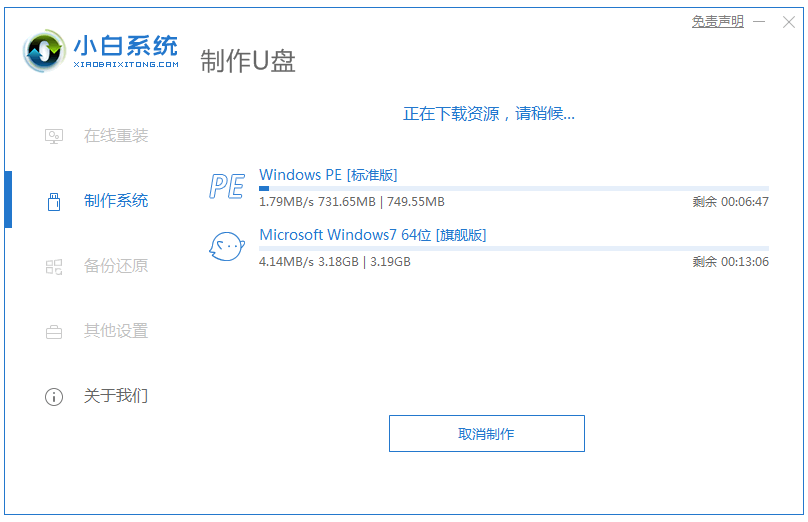 步驟六:我們自己選擇是否下載系統,假如你沒有下載系統鏡像則可以勾選自己想裝的系統點擊下載系統且制作U盤,已經下載了系統的話就點擊取消下載且制作U盤,制作完成后將系統放到U盤里面即可。