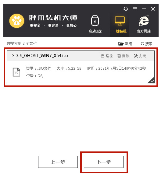 5.此時我們就可以在該功能中找到之前下載的ISO文件,選中該文件,點擊“下一步”;