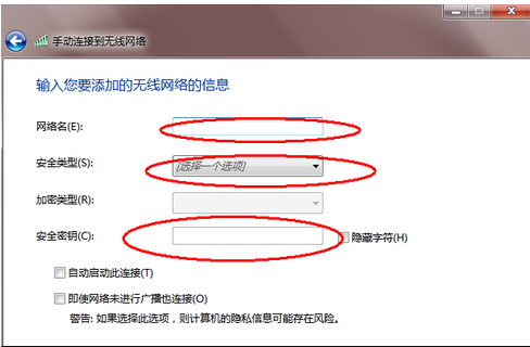 5、單擊添加,彈出手動連接到無線網絡窗口,選擇第一個手動創建即可。