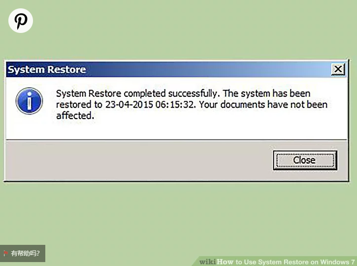 8、還原完成后,Windows 將彈出提示框,提示還原成功即可。