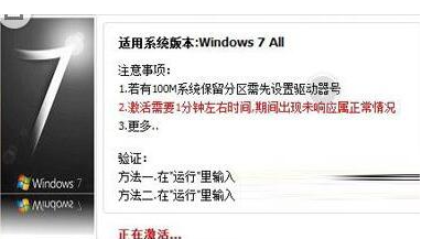 2、接著來到win7 activation軟件的主頁面后,鼠標點擊頁面下方的激活按鈕,軟件就會自動開始激活win7旗艦版系統了。
