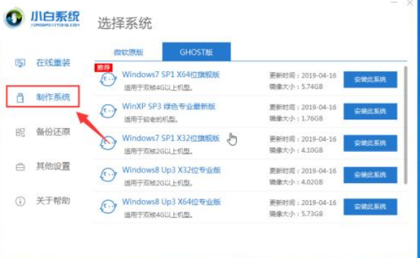 2.然后選擇制作系統,選擇我們要制作的系統。