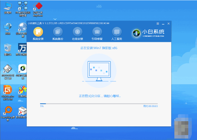 5.當進入到桌面后,我們打開小白裝機工具,會開始自動安裝系統鏡像文件,無需我們手動操作,等待安裝完成即可。