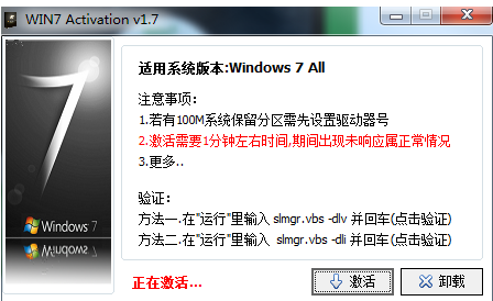 3、當進入的激活工具首頁當中,我們單擊激活按鈕,耐心等待系統的激活完成。