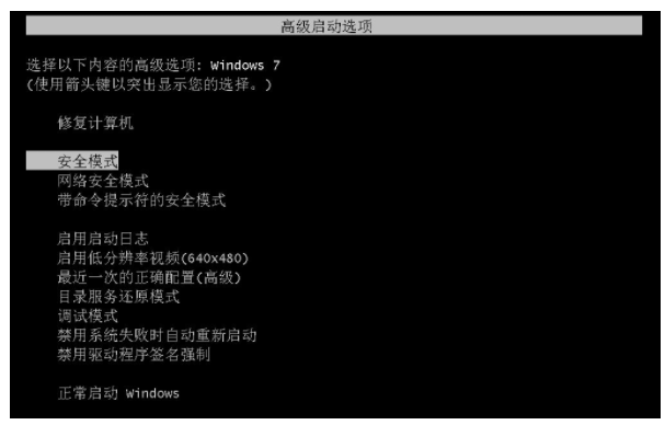 1、在主機箱上按下電源鍵,開機后,windows系統啟動時在鍵盤上按F8鍵,進入安全模式。