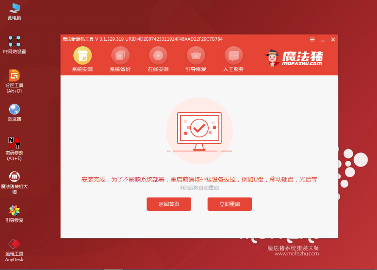 3、部署環境完畢之后,將提示我們需要重啟電腦操作,點擊“立即重啟'即可。