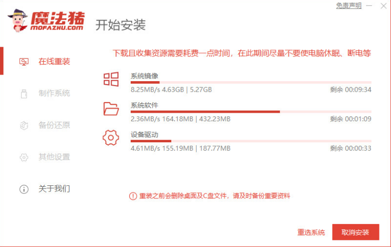 2、當進入到下一步,開始下載系統鏡像文件及驅動等等,耐心等待下載。