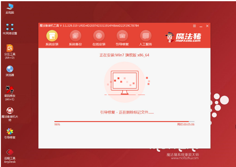 5、電腦進入pe后,軟件將會自動進行系統重裝。