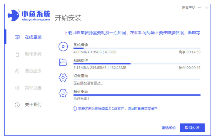 3、等待軟件下載系統鏡像,備份驅動等資料。