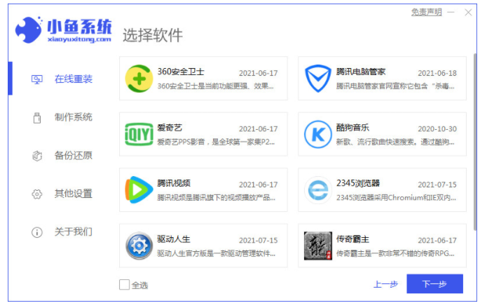 1、下載并運行小魚系統工具,點擊在線安裝,選擇安裝系統。