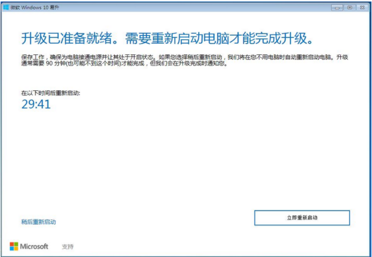 6.上述步驟完成之后提示我們重啟電腦進行下一步的操作,未操作一段時間后將自動重啟進入更新過程哦。