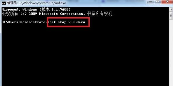 4.在打開界面輸入net stop WuAuserv后按回車;
