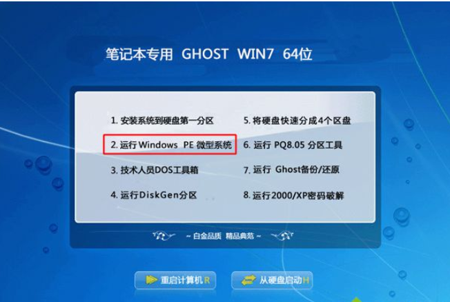 2、進入光盤主菜單界面,點擊選項2運行pe微型系統(不同的啟動光盤按照提示選擇進入pe內安裝即可)。