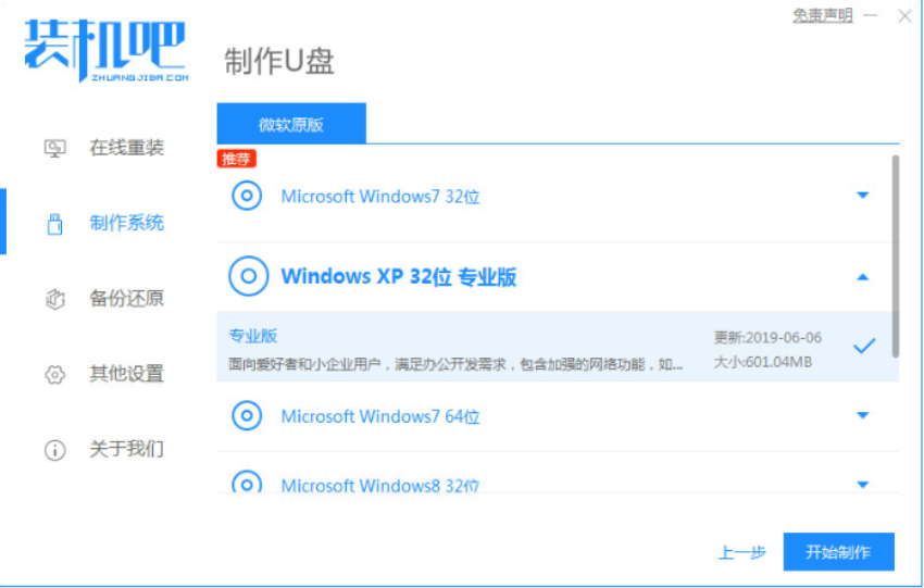 1.下載 裝機吧一鍵重裝系統,需要插入一個8g左右的U盤,選擇u盤重裝系統模式,點擊開始制作,如圖。