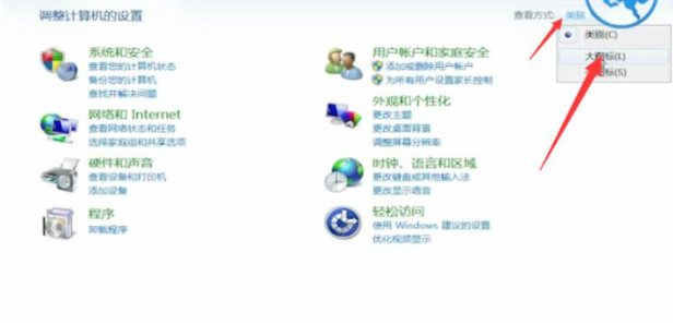 2、進入界面之后,將查看方式更改為大圖標即可。