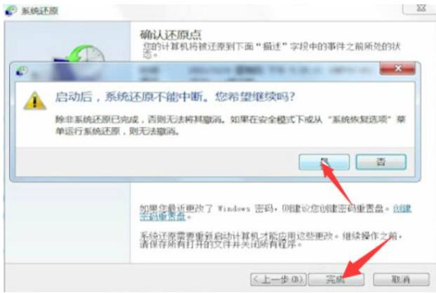 5、然后在彈出的頁面中,點擊是就可以開始系統還原系統