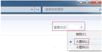 2、進入到控制面板頁面,點擊查看方式下拉框選擇大圖標進入即可。