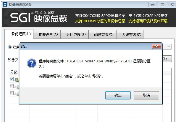 5、當電腦彈出提示框,提示映像文件即將還原到分區C,我們點擊確定即可。
