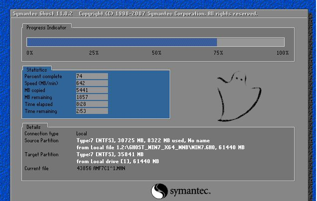 7、啟動之后進入到這個頁面,執行C盤格式化以及系統映像安裝到C盤的部署過程中,耐心等待。