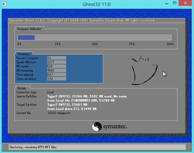 6、完成上面的操作后,程序開始釋放系統鏡像文件,安裝系統。我們只需耐心等待,等操作完成后會自動重啟電腦。