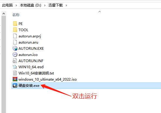 2、文件解壓后會出現如圖,雙擊[硬盤安裝.exe]。