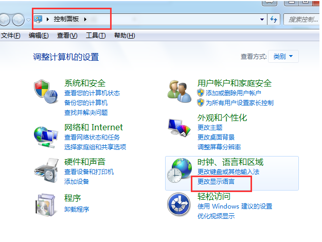 1.首先我們在設置里找到控制面板,點擊時鐘、語言和區域下方的【更改顯示語言】。