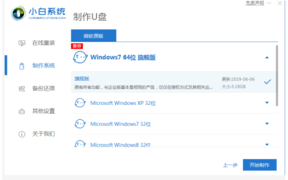 1、下載安裝小白一鍵重裝軟件,選擇制作系統。
