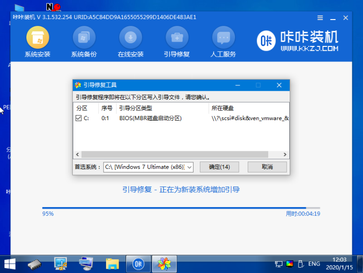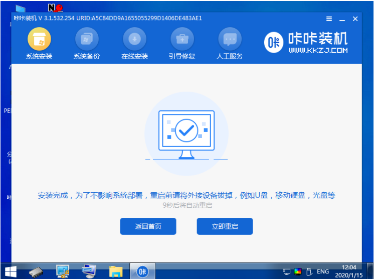 5、重啟電腦過程中,請通過咔咔裝機的PE系統進入電腦pe系統。