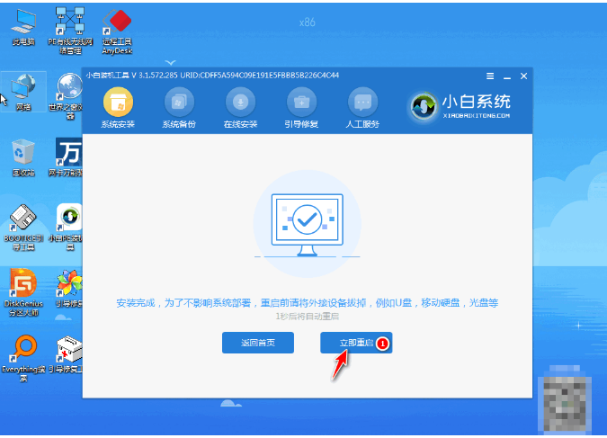 7、系統安裝完成后,再次點擊”立即重啟“。