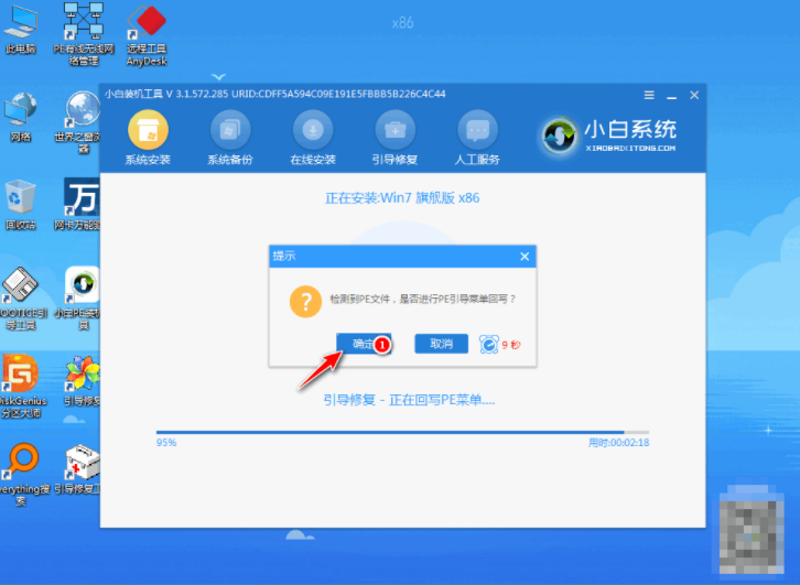 4.進入電腦的引導修復,需要漫長的等待系統的確認。電腦的系統檢測到pe文件,點擊“確認”即可。就可以進入。