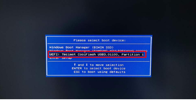 2、完成之后,拔掉U盤插入到需要重裝的電腦上,開機或重啟電腦,此時我們可以一直不停的反復按U盤啟動快捷鍵如F12鍵,進入啟動項設置頁面。通過上下鍵選擇U盤選項后回車進入下一步,一般帶有“USB”字樣的選項即為U盤選項。