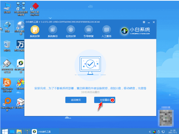 8、系統安裝完成后我們點擊立即重啟電腦即可。