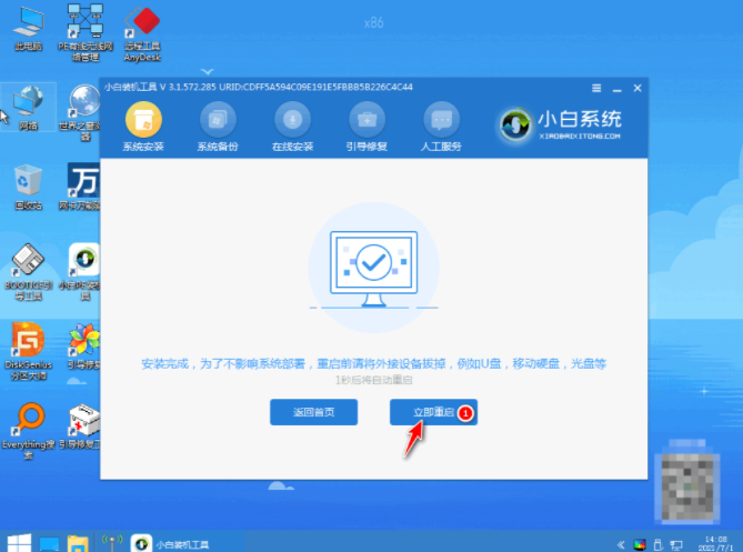 6、系統安裝完成之后,我們呢再次點擊立即重啟電腦。