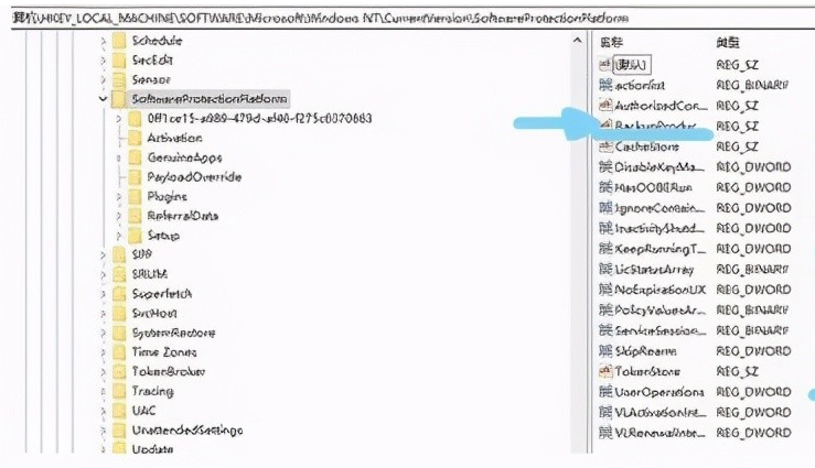 6、單擊【SoftwareProtectionPlatform】在右側,找到B【ackupProductKeyDefault】并雙擊彈出編輯字符串窗口,下方的數值數據即為windows的激活密鑰。