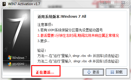 這時軟件開始激活win7系統步驟,耐心等待即可。